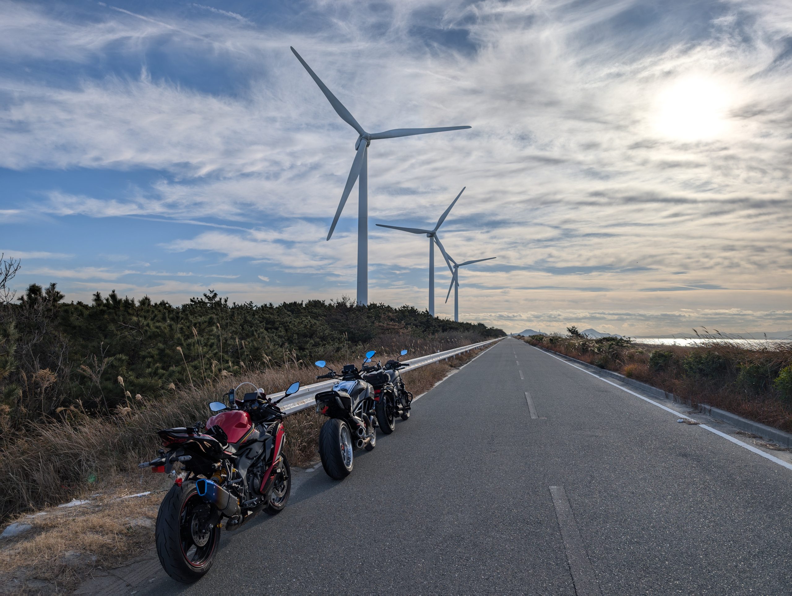 今年最後のツーリング!ということで渥美半島の方へ行ってきました。目指すは太平洋ロングビーチと西ノ浜風力発電所です。良い天気に恵まれ、時期のわりに楽しくツーリングできました笑 正直絶景スポットがすぐ終わってしまうのが難点ですねこのコースは。ちょっとゆっくりツーリングしていたので帰りは真っ暗でした!高速道路を使ってワープ。ZX25Rはドッカティディアベルについて行くので精一杯でした笑