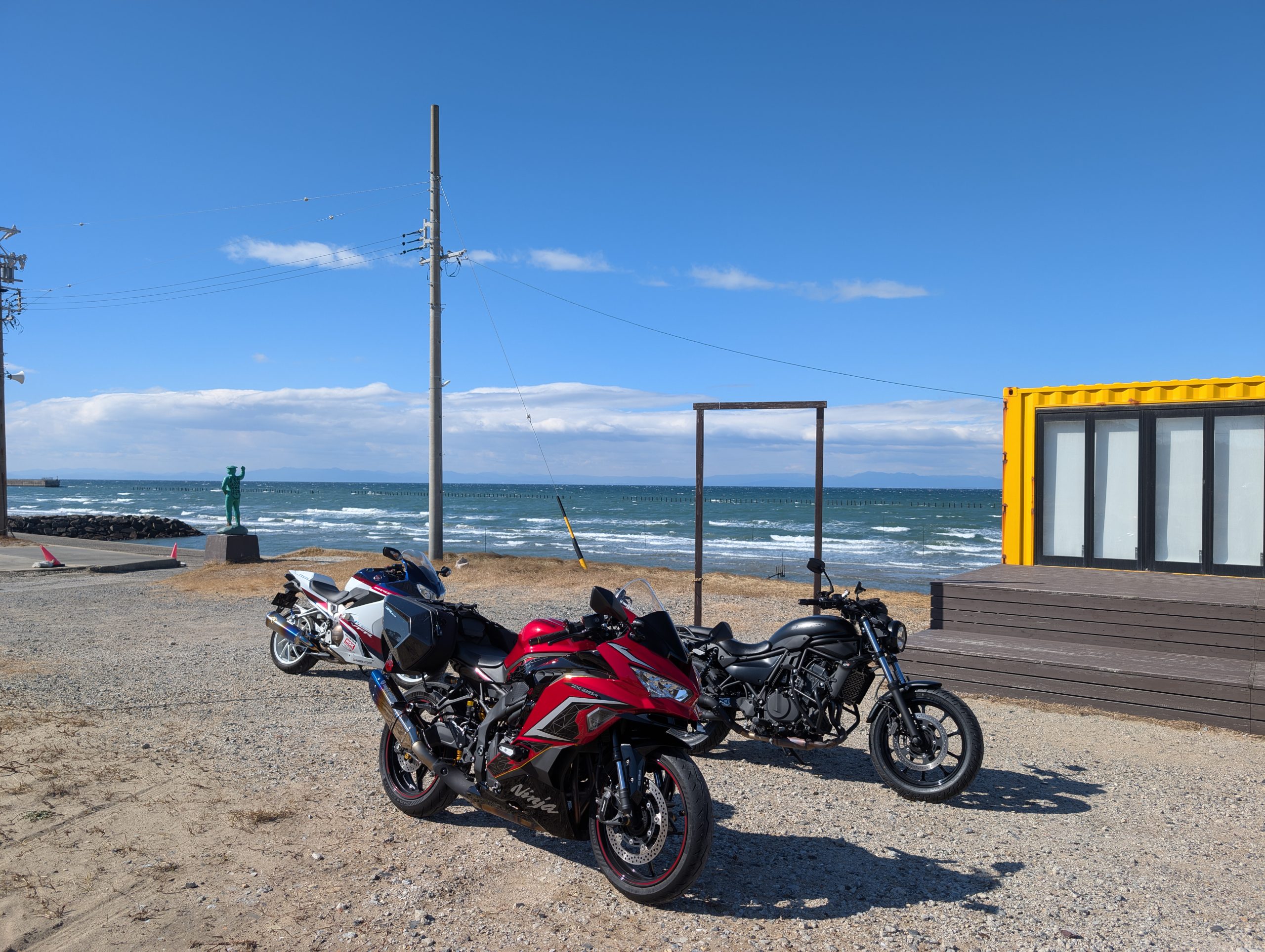 今年の初ツーリングは定番の知多半島へ。知多産業道路を通り知多半島の海沿いを一周します。目的地はザグッドサンビーチハウスと羽豆岬です。ビーチハウスの駐車場が傾斜している上に砂利道とバイクには地獄でした笑 みんなで一台ずつ支えながら道路に復帰させました。誰もこかさなくてよかった~。ZX25Rはここで持病のエンジン始動不良病が?!2分ぐらいずっとセルと格闘してました。なんとかかかったのでセーフ!冷や汗でましたよ。お昼は人気の釜めし屋さん納屋へ。釜めしおいしかった~ 前回の反省をいかし16時には名古屋に帰れるように撤収です。